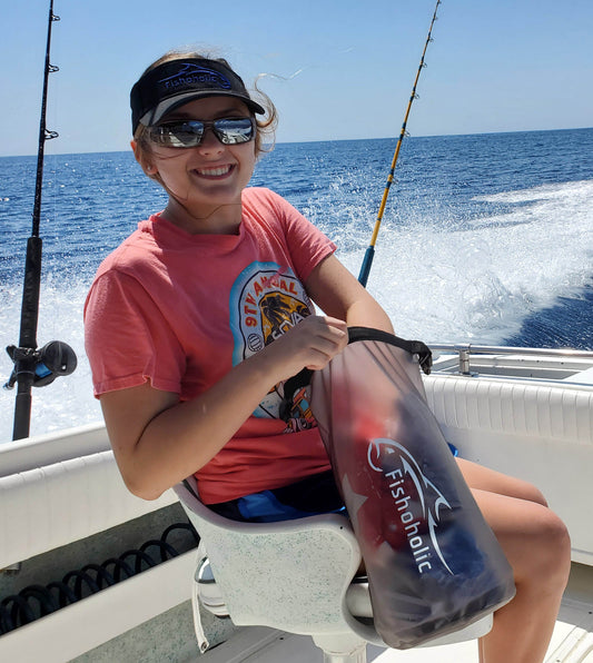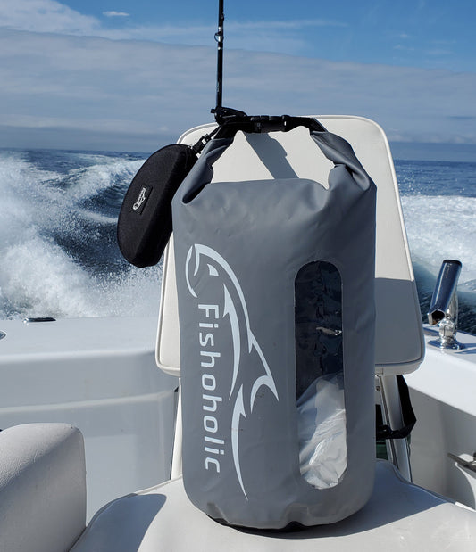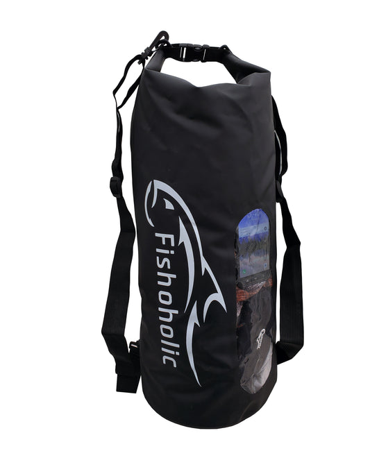 Fishoholic 15L Dry Bag - Clear Window Waterproof Gear Bags - Fail-Safe Snap - Tough & Durable